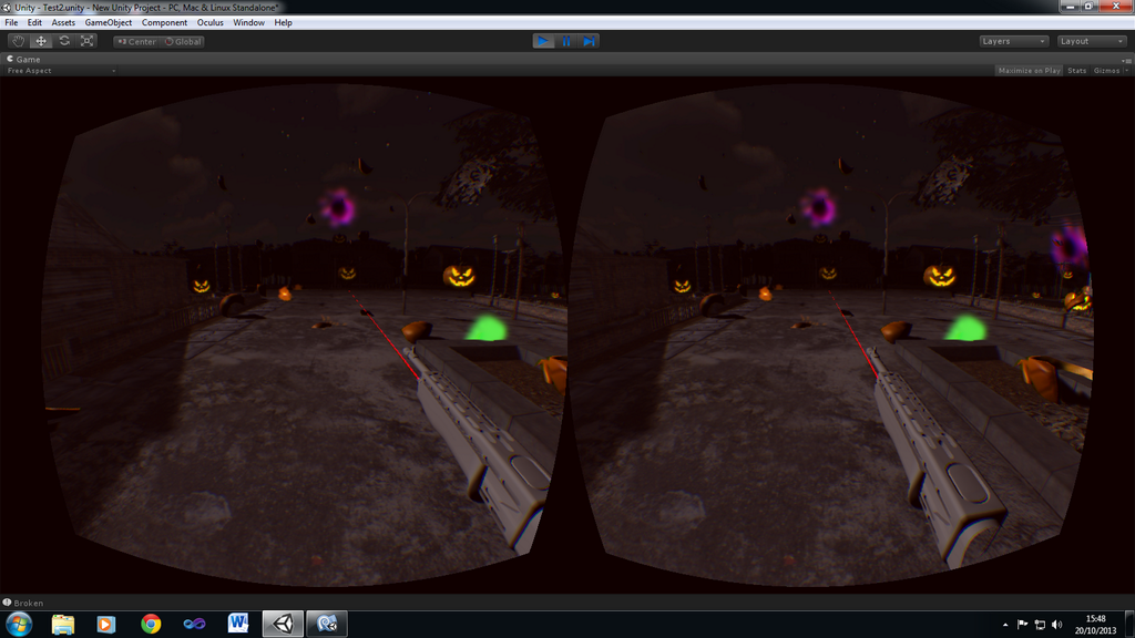 I wanted to make a game for the Oculus Rift so I took the chance to make one in a weekend for the Scary October Game Jam. It’s a first person shooter survival game which pits the player against hundreds of demonic bouncing pumpkins. The pumpkins vary in sizes, speeds and strengths and they ALL laugh maniacally when they get close enough to you. It was a fun game to test out and play and I really liked being able to look behind me whilst running using the rift’s head tracking. I’ll definitely do another Oculus Rift game some day as it was really easy to get working in Unity.